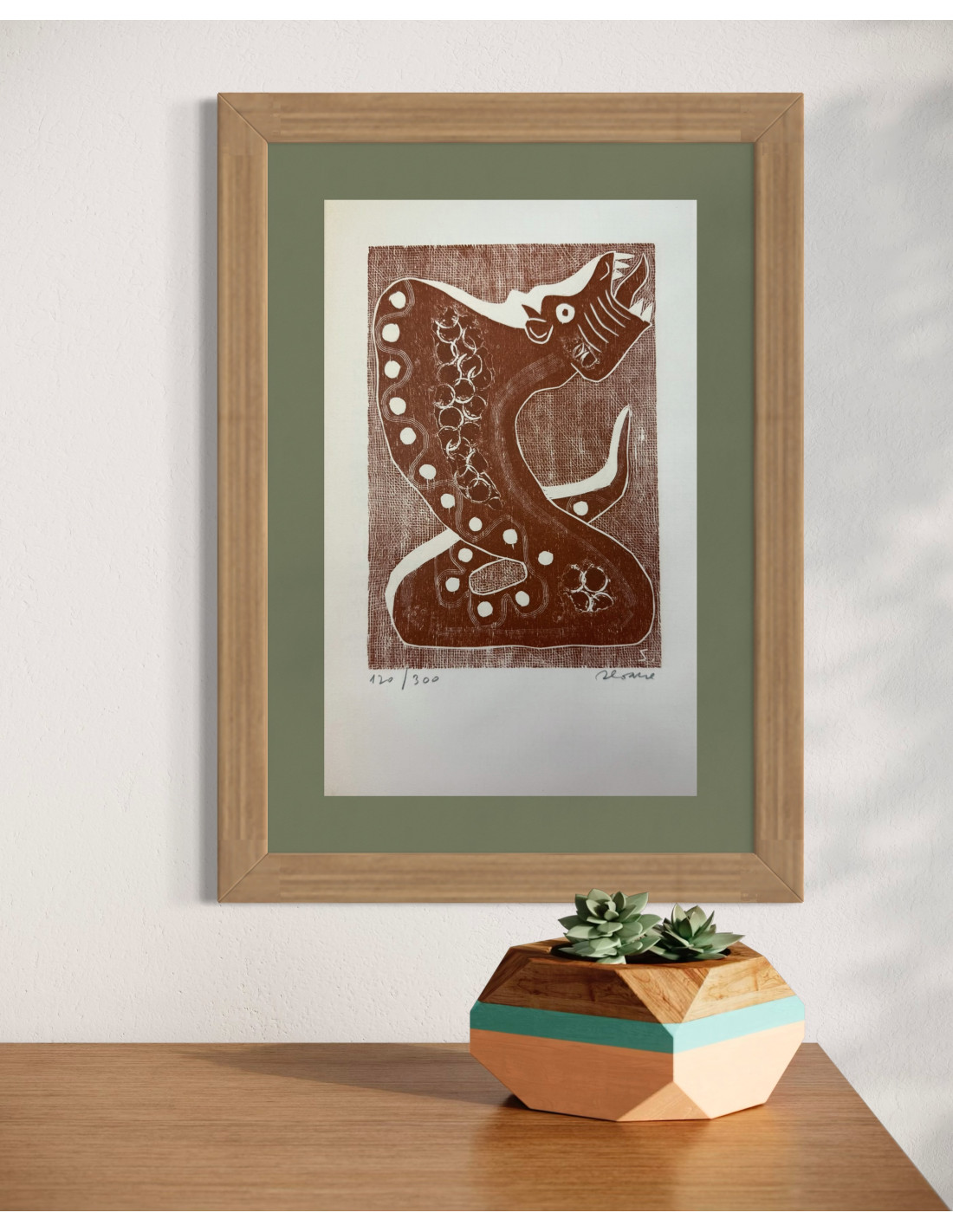 Luis Seoane. (Buenos Aires, Argentina, 1910 - A Coruña, 1979). Los Bueyes del Bestiario Girri. Xilografía.