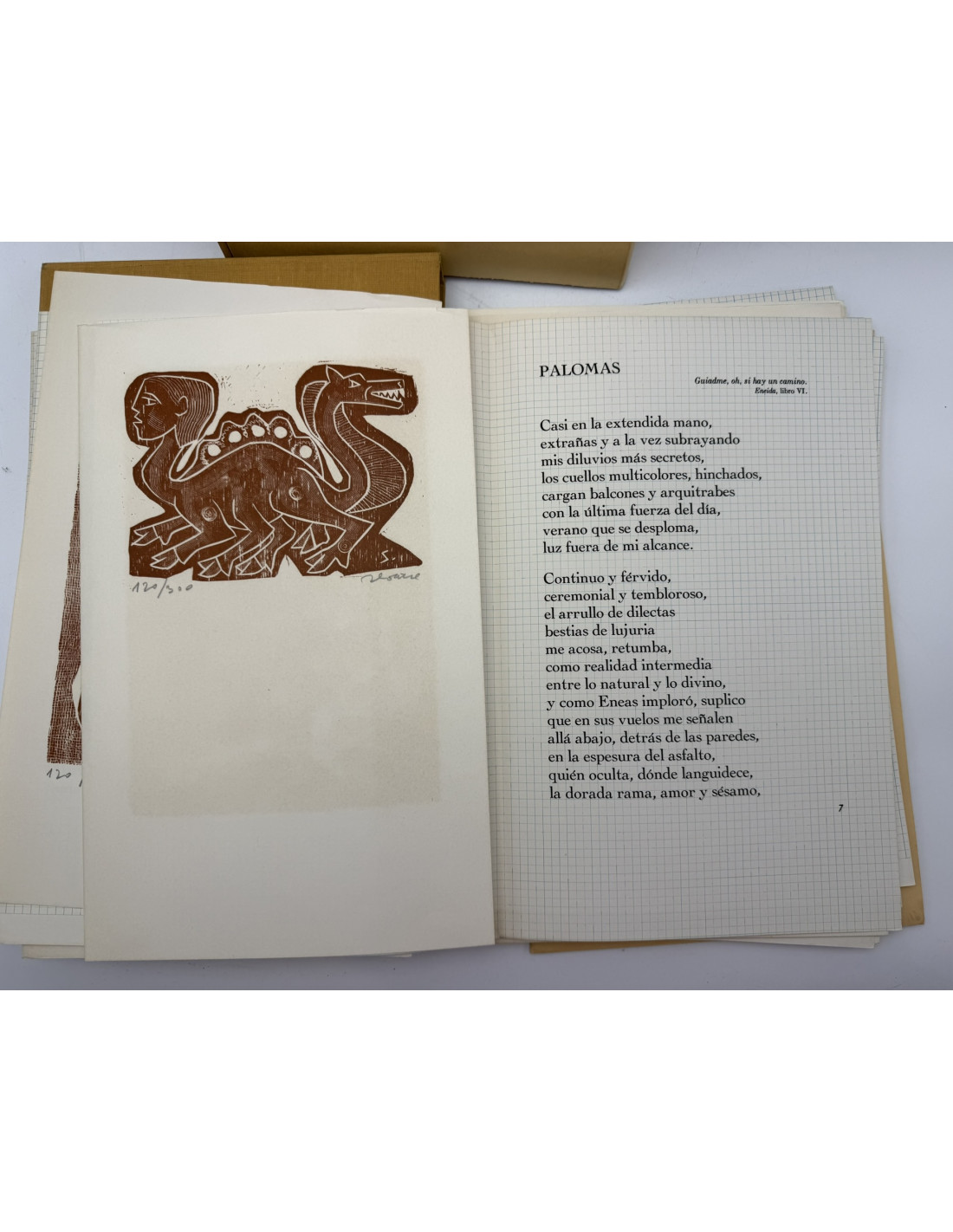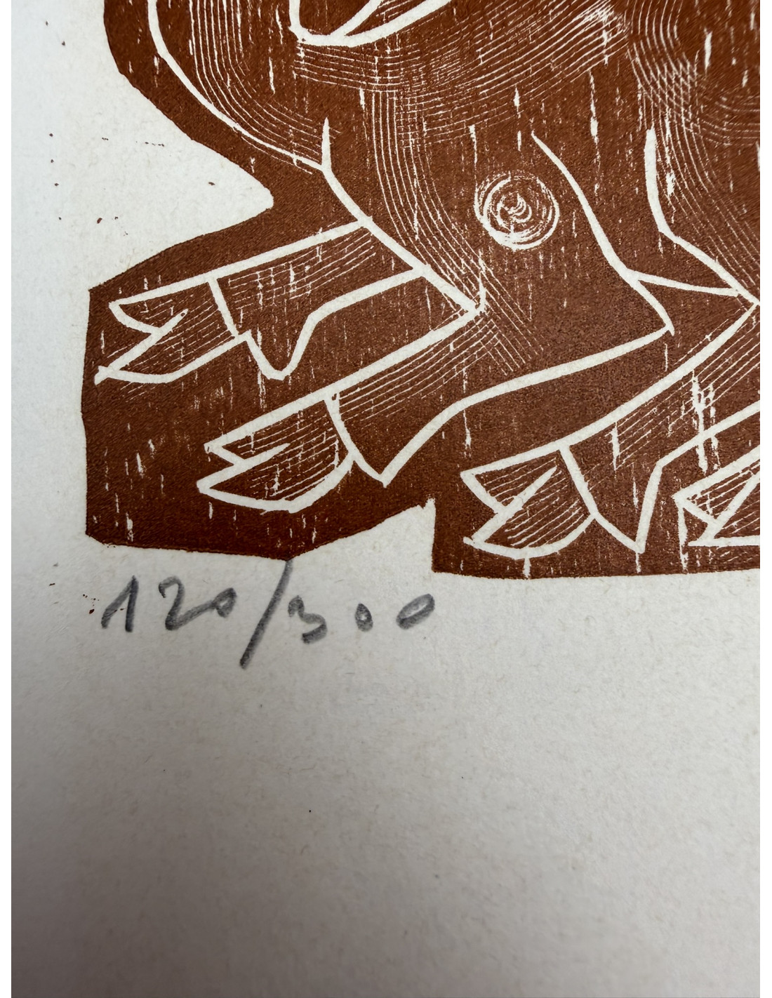 Luis Seoane. (Buenos Aires, Argentina, 1910 - A Coruña, 1979). Palomas del Bestiario Girri. Xilografía.