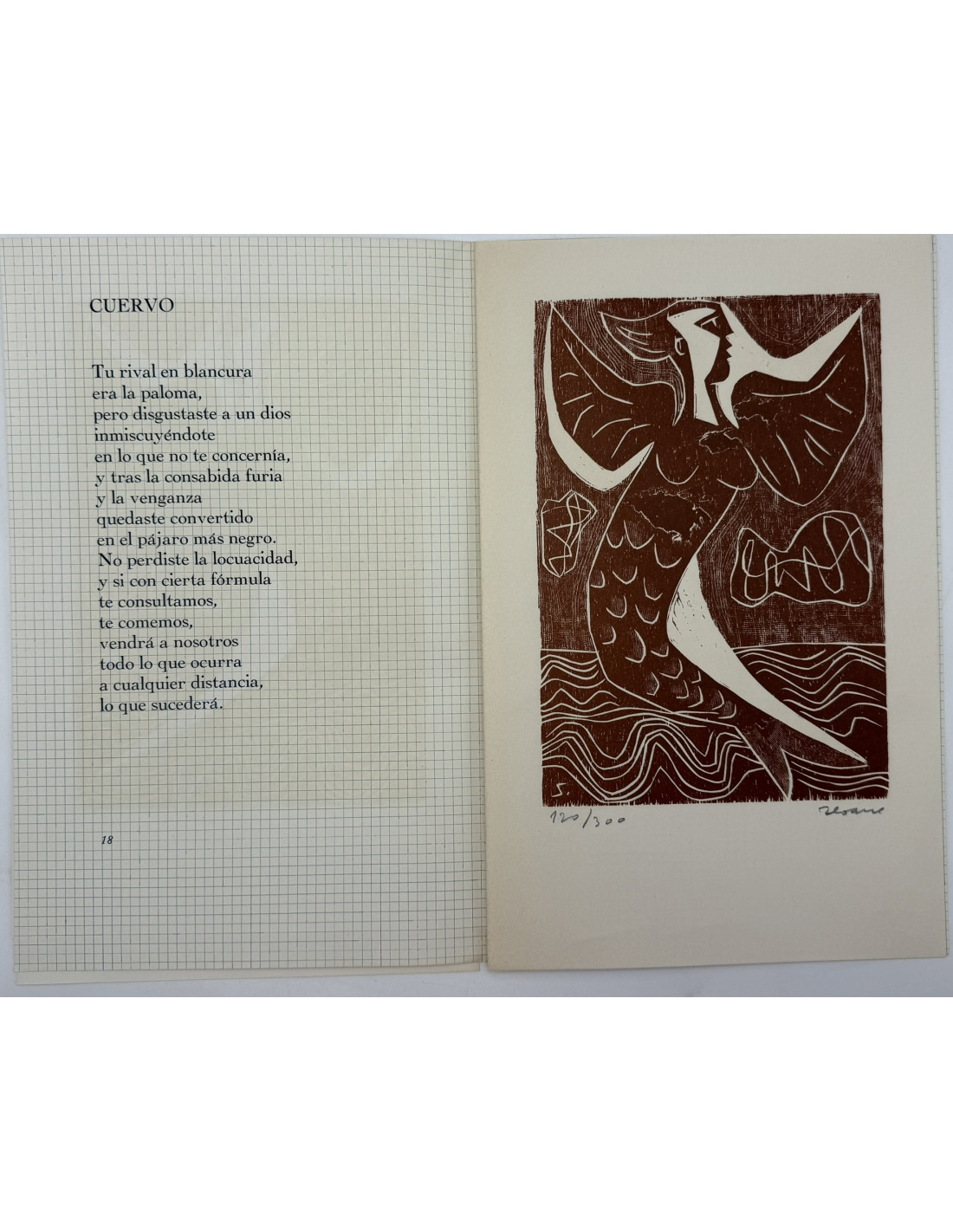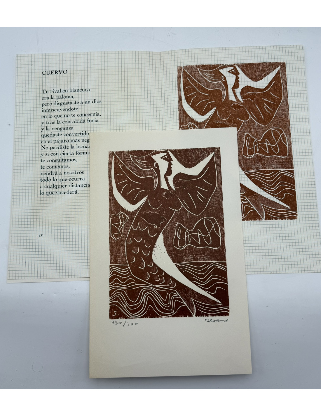 Luis Seoane. (Buenos Aires, Argentina, 1910 - A Coruña, 1979). Cuervo del Bestiario Girri. Xilografía.