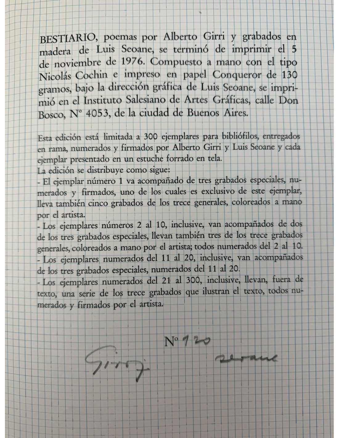 Luis Seoane. (Buenos Aires, Argentina, 1910 - A Coruña, 1979). Bestiario Girri. Xilografía.